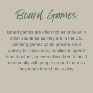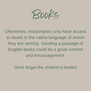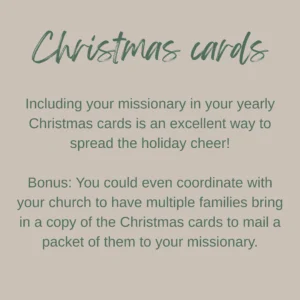 Please note, while surprises are always fun, oftentimes they can be more stressful when dealing with overseas logistics. Please always check with your missionary about the best way to send items, or ask about their actual needs and wants before sending them something that might slightly miss the mark โ they’d love to hear from you!